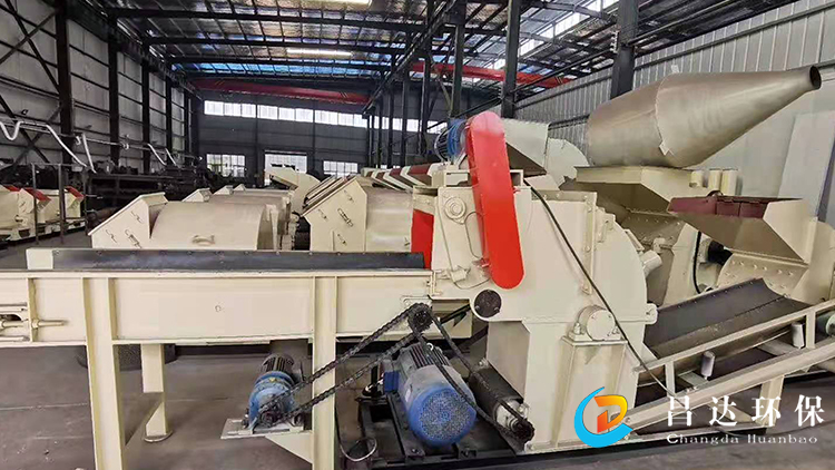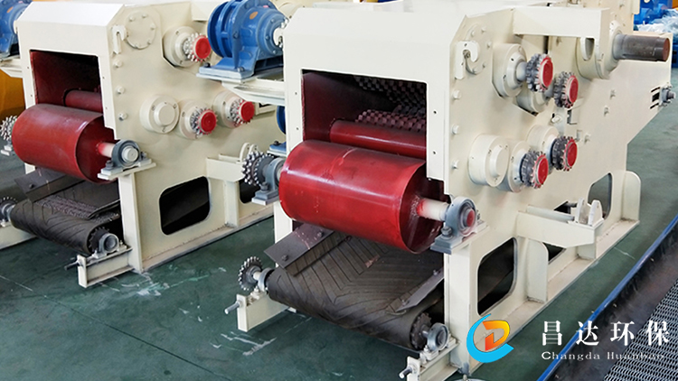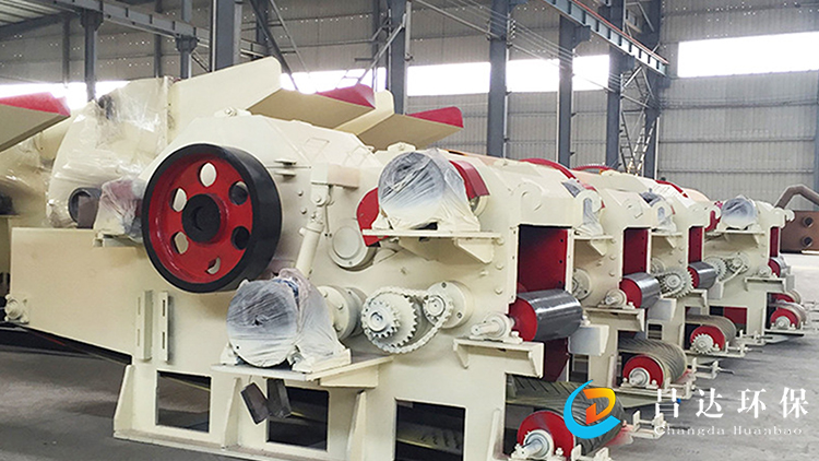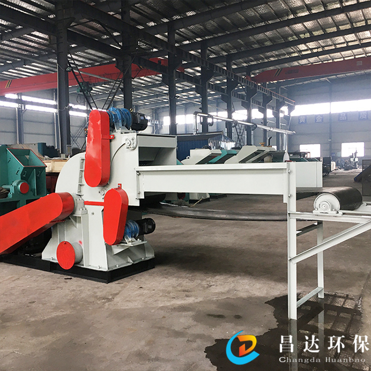 木料由進料口送入,當木料按接觸到削切刀片時,跟著削切刀盤的高速旋轉進行削切,其切削機構是一個旋轉的鼓輪,上面安裝若干把飛刀,飛刀旋轉時將木材加工成木片。鼓輪外緣上有多個方形通孔,切削下來的合格片料通過網篩孔落下,有底部排出,大的料片將在機內再次切削。